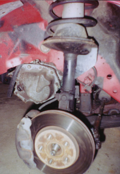 | A Shelby Z with 100,000 miles on the original suspension components corners a little less than crisp... With this being a street/strip project car, the decision was made in Spring 2000 to use give the car a mild street suspension buildup to stiffen it up, lower it 1", remove the power rack, and replace worn components. The following parts were used: | |