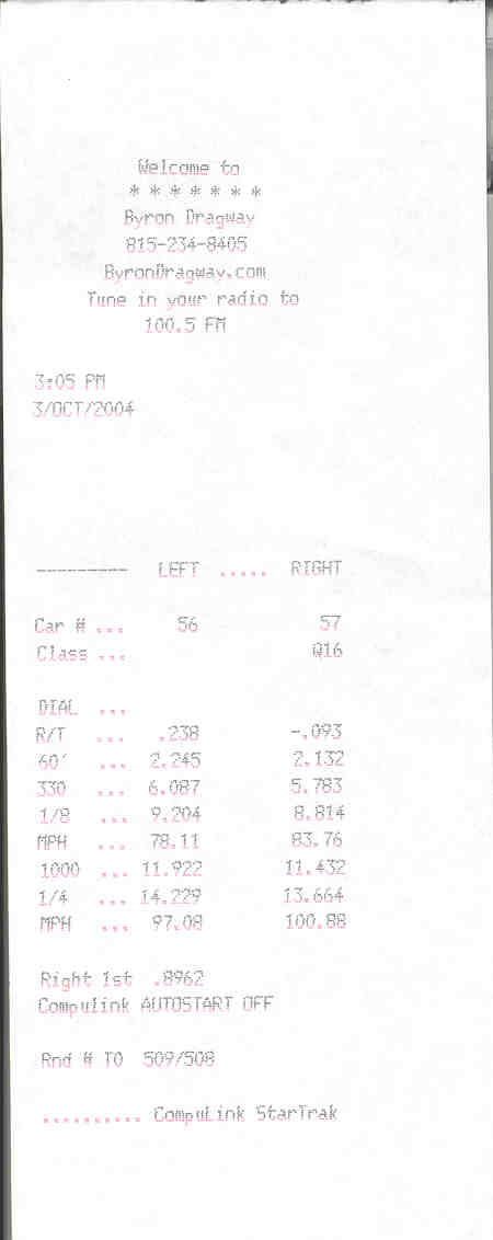 96.7 | '02 Neon ES | 2.0L SOHC 16V | T350 | Radials | Joshua Kolbach | ![]() |