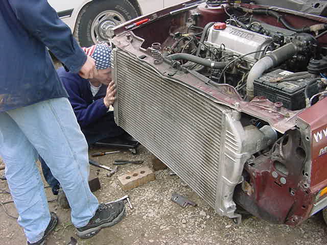 Thanks to Dave for providing a home for the New Yorker, hosting our New Yorker Thrash #3, and for aquiring this HUGE intercooler! Thanks to ALL who were able to participate and help out!