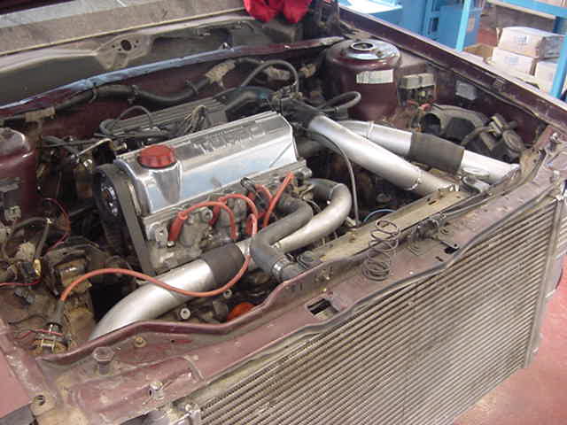 Dave mounted an Omni radiator in the car prior to the plumbing