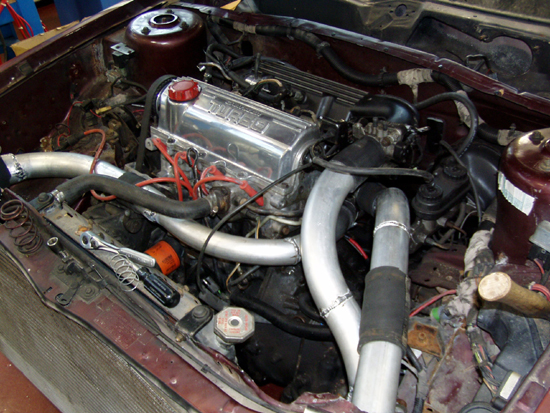 Thanks to Bad Ass Performance for providing the shop and supplying the aluminum intercooler plumbing materials. Thanks to Dave for transporting the New Yorker to the shop.